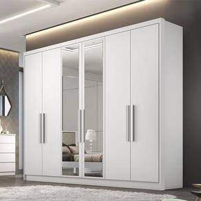Guarda Roupa Casal Ambiente Linea 6 Portas 4 Gavetas Neve com Espelho ? Novo Horizonte
