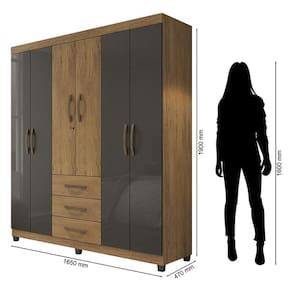 Guarda Roupa Casal Ambiente Lion 6 Portas Freijó Grafite Perolizado - Móveis Leão