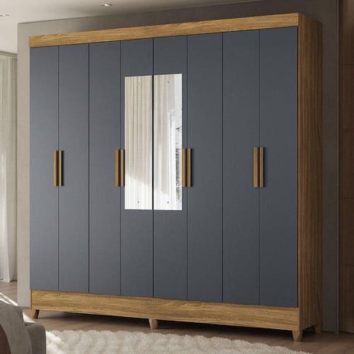 Guarda Roupa Casal Ambiente Marajó 8 Portas Freijó Cinza com Espelho Moval