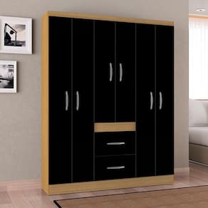 Guarda Roupa Casal Milão 6 Portas Damasco Preto Poquema