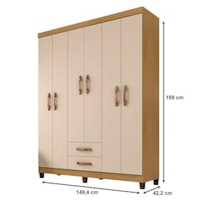 Guarda Roupa Casal Ambiente Mogi 6 Portas Carvalho Americano Off White - Incorplac