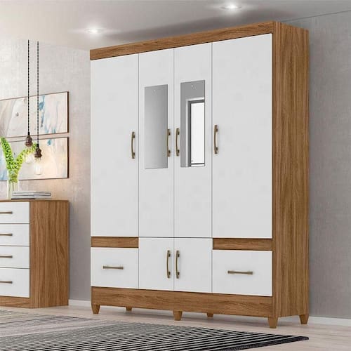 Começou a montar seu quarto? Então apresentamos para você este belo guarda roupa da linha MS912. Possuindo seis portas, sendo as duas centrais com espelho, revela um amplo espaço interno para acomodar suas roupas e acessórios. Além disso, conta com duas gavetas equipadas com corrediças metálicas, proporcionando um deslizamento mais suave. Os puxadores na cor bronze dão um toque de requinte, enquanto os pés em PVC garantem mais estabilidade e durabilidade. Fabricado pela Moval, é desenvolvido em 100% MDP de alta qualidade. Com um design moderno e acabamentos refinados é perfeito para quem está procurando otimizar o espaço sem abrir a mão da organização, aproveite!