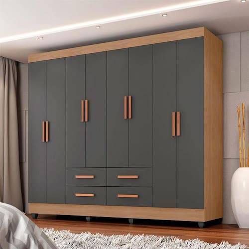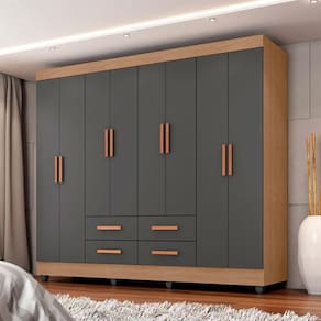 Guarda Roupa Casal Ambiente Porto 8 Portas Nature Cinza Móveis Leão