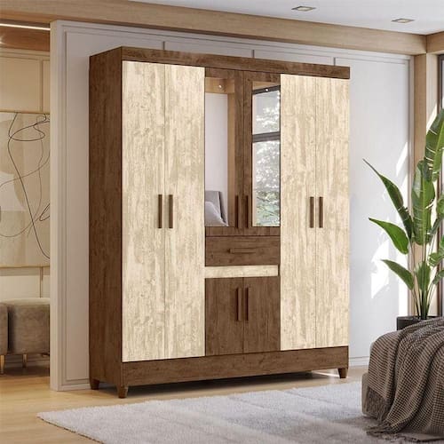 Está montando seu quarto? Apresentamos para você este belo guarda roupa da linha Portugal. Contando com oito portas, sendo as duas centrais com espelho que proporciona uma ótima organização de suas roupas e acessórios, além de uma gaveta com corrediças metálicas que deslizam mais facilmente. Os puxadores em MDF dão um toque sofisticado, enquanto os pés em PVC garantem mais estabilidade. Fabricado pela Moval, é desenvolvido em 100% MDP de alta qualidade. Sendo perfeito para quem está procurando praticidade sem abrir mão da organização e elegância, aproveite!