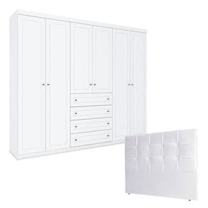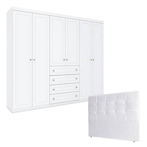 Guarda Roupa Casal Americano com Cabeceira Luiza 140 cm Branco Henn