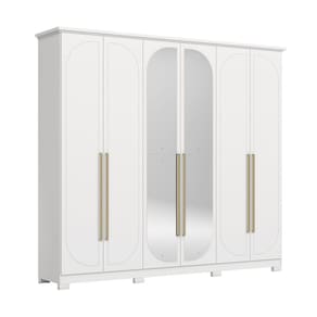 O(a) Guarda-Roupa Casal Americano Prime 6 Portas 6 Gavetas com Espelho Branco - Henn é produzido em MDP/MDF na escala de brilho Fosco, e possui um grau de dificuldade de montagem: Médio.