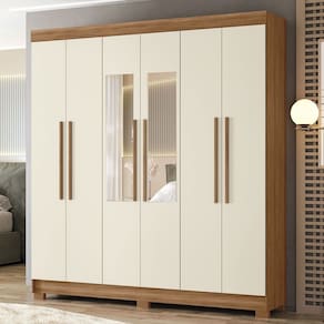 O(a) Guarda-Roupa Casal Ampére 6 Portas 2 Gavetas Jatoba/Areia com Espelho - Pnr Móveis é produzido em MDF, MDP e HDF na escala de brilho Fosco, e possui um grau de dificuldade de montagem: Médio.