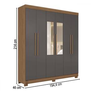 O(a) Guarda-Roupa Casal Ampére 6 Portas 2 Gavetas Jatoba/Grafite com Espelho - Pnr Móveis é produzido em MDF, MDP e HDF na escala de brilho Fosco, e possui um grau de dificuldade de montagem: Médio.