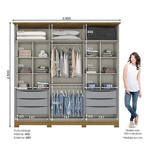 Guarda Roupa Casal Andréas 6 Portas Cinza Nature - Henn