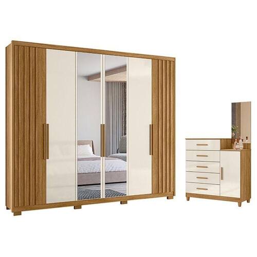 Guarda Roupa Casal Araguaia e Cômoda Lisboa Freijó Off White com Espelho - Moval