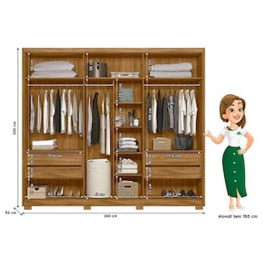 Começou a procurar móveis para seu quarto? Então apresentamos para você este belo conjunto composto pelo guarda roupa da linha Araguaia e a cômoda da linha Vênus. O guarda roupa se destaca por suas seis portas, sendo duas com detalhes ripados em MDF. Com três opções na hora da montagem das portas, se adapta de acordo com o seu gosto. Internamente, conta com quatro gavetas com corrediças telescópicas. Combinando com o guarda roupa, a cômoda possui uma porta com detalhes frisados e quatro gavetas com corrediças metálicas. Assim como o guarda roupa, a cômoda conta com puxadores em MDF e pés em PVC entregando mais estabilidade e durabilidade. Fabricado pela Moval, são desenvolvidos em MDP. Sendo perfeito para quem busca qualidade, beleza e organização, aproveitem!