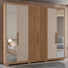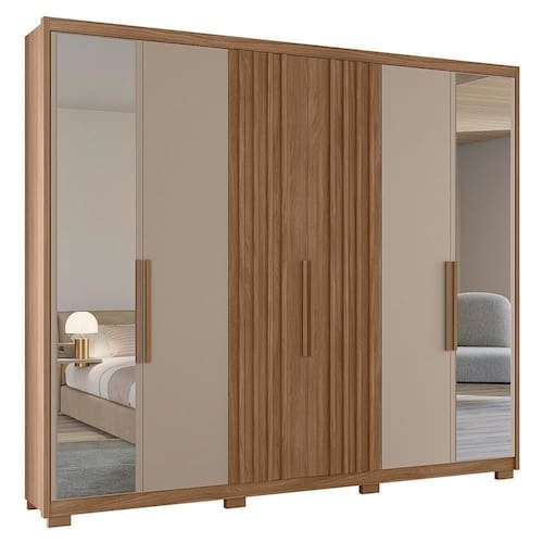 Guarda Roupa Casal Araguaia Ripado 6 Portas com Espelho - Moval
