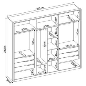 Características Técnicas:- Desenvolvido em MDP- Pintura e acabamento em U.V na cor Amêndola- Possui 06 Portas- Possui 06 Gavetas- Gavetas com Corrediças Telescópicas livres de qualquer enrosco- Puxadores em Alumínio- Incluso 03 Maleiros- 04 Prateleiras Internas- Possui 03 cabideiros metálicos- Maior organização, espaço e praticidade- Lindo DesignDimensões:Altura: 230 cmLargura: 267 cmProfundidade: 55 cm
