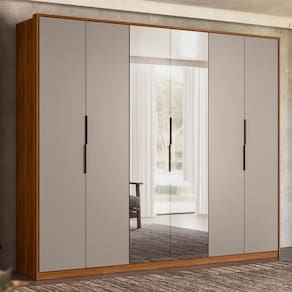 ESPECIFICAÇÕES: Estrutura em MDP Pintura UV 6 Portas sendo 2 com espelhos Dobradiças metálicas Puxadores em alumínio nas portas 2 Espelhos (L x A x P): 43 x 218 x 0,3 cm 6 Gavetas internas Corrediças telescópicas Puxadores metálicos nas gavetas 3 Cabideiros metálicos Prateleiras Mini sapatas Ampla divisão interna