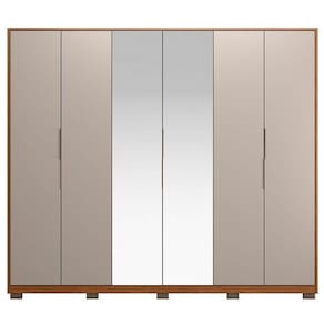 Guarda Roupa Casal Atrice 6 Portas Nogueira Nude Prime TX com Espelho e Pés Demóbile Demartêz