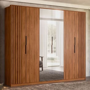 Guarda Roupa Casal Atrice Ripado 6 Portas com 2 Espelhos - Demartêz - Marrom