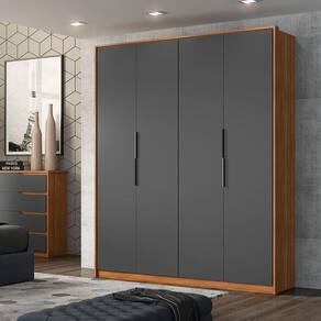 Guarda Roupa Casal Attore 4 Portas Amêndola Grafito - Demartêz