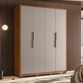 Guarda Roupa Casal Attore 4 Portas Nogueira Nude Prime TX com Pés Demóbile - Demartêz