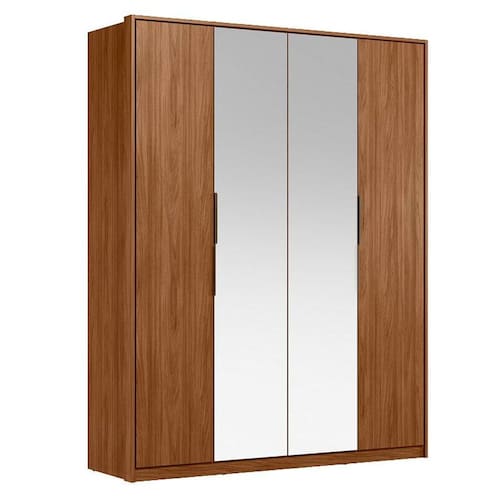 Guarda Roupa Casal Attore 4 Portas Nogueira Touch com Espelho Demóbile - Demartêz
