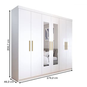 O(a) Guarda-Roupa Casal Aurora Radiante 6 Portas 2 Gavetas com Espelho Branco Neve - Loja é produzido em MDP na escala de brilho Semi-Brilho, e possui um grau de dificuldade de montagem: Médio.