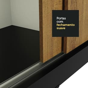 O móvel conta com quatro portas de correr com deslizamento suave, trilhos em alumínio para maior resistência e quatro puxadores externos. Além disso, o sistema anti-descarrilhamento evita com que as portas saiam do trilho e transmitem mais segurança no uso diário.