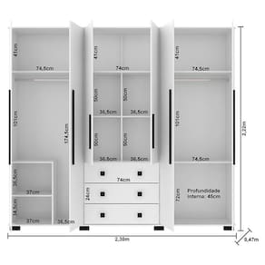 O Guarda Roupa B23063 foi desenvolvido pela Araplac para oferecer funcionalidade, elegância e durabilidade. Com 6 portas e 3 gavetas proporciona amplo espaço interno para manter as roupas, acessórios e objetos pessoais sempre organizados. Seu design moderno se adapta a todos os espaços, adicionando elegância ao ambiente. Confira as características técnicas e aproveite.