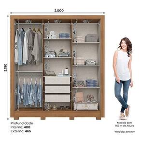 Guarda Roupa Casal B366 Nature Off White Henn - Briz Móveis