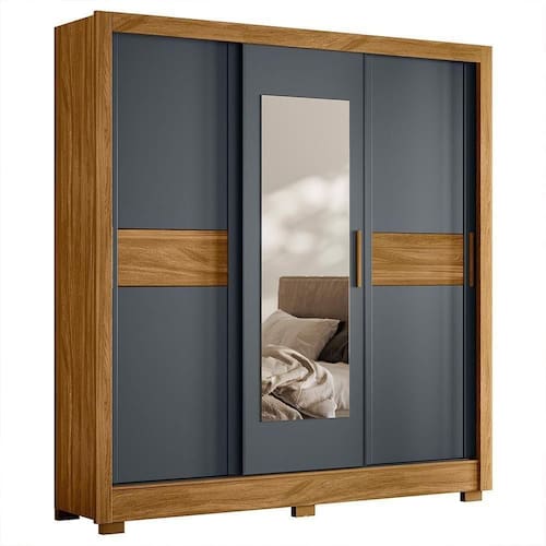 Tipo de Guarda Roupa: Casal | Tonalidade: Multicolorido | Quantidade de Portas: 3 | Fabricante: Moval Cor: Freijó/Cinza