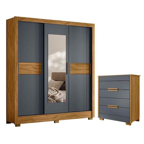 Guarda Roupa Casal Bahamas e Cômoda Dhara Freijó Cinza – Moval