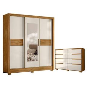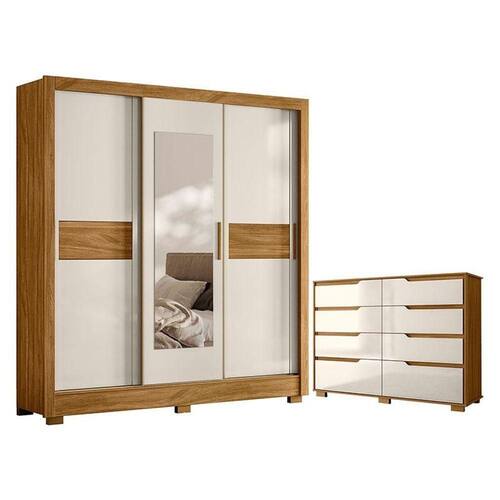 Guarda Roupa Casal Bahamas e Cômoda Georgia Freijó Off White Moval