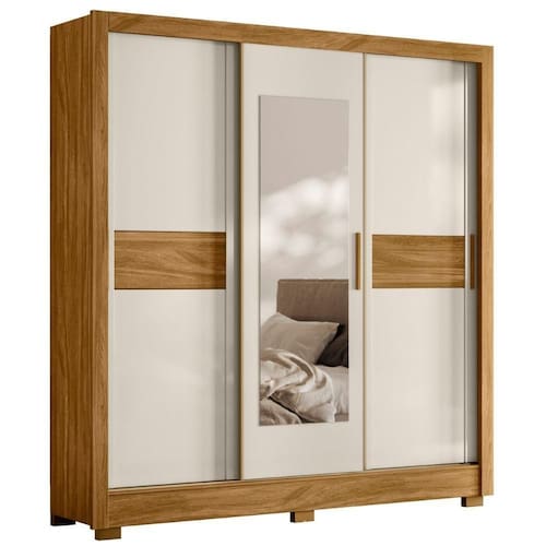 Guarda Roupa Casal Bahamas Espelho 3 Portas De Correr Moval