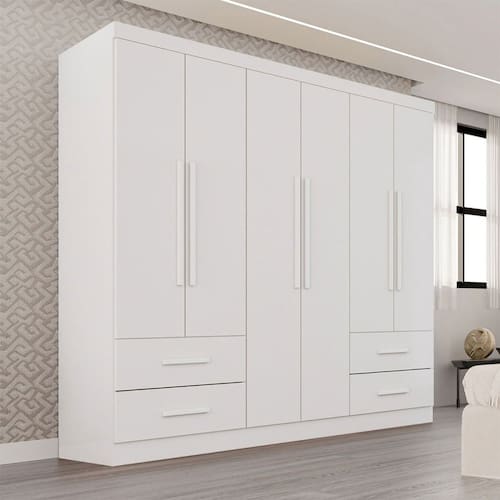 O(a) Guarda-Roupa Casal Balder Premium 6 Portas 4 Gavetas Branco - Pnr Móveis é produzido em MDP na escala de brilho Semi-Fosco, e possui um grau de dificuldade de montagem: Médio.