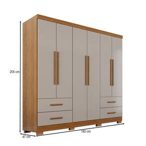 O(a) Guarda-Roupa Casal Balder Premium 6 Portas 4 Gavetas com Pés Cinamomo/Off White - Pnr Móveis é produzido em MDP na escala de brilho Semi-Fosco, e possui um grau de dificuldade de montagem: Médio.