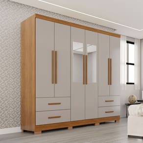 O(a) Guarda-Roupa Casal Balder Premium 6 Portas 4 Gavetas com Pés e Espelho Cinamomo/Off White - Pnr Móveis é produzido em MDP na escala de brilho Semi-Fosco, e possui um grau de dificuldade de montagem: Médio.