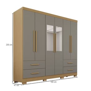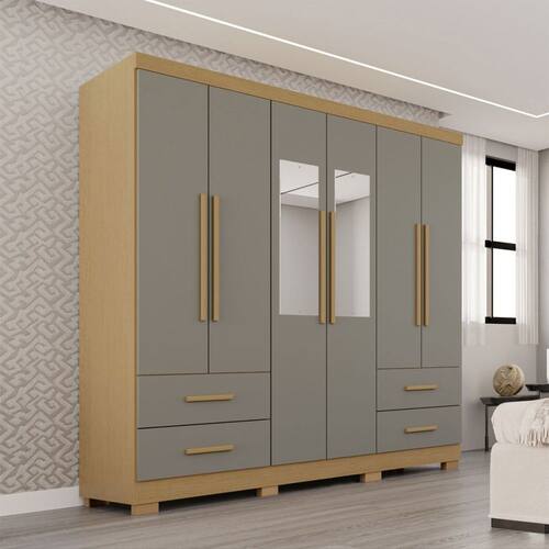 O(a) Guarda-Roupa Casal Balder Premium 6 Portas 4 Gavetas com Pés e Espelho Jequitibá/Granizo - Pnr Móveis é produzido em MDP na escala de brilho Semi-Fosco, e possui um grau de dificuldade de montagem: Médio.