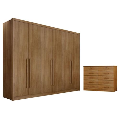 Guarda Roupa Casal Bandeira e Gaveteiro Milão com Chave Cumaru 23 - Novo Horizonte