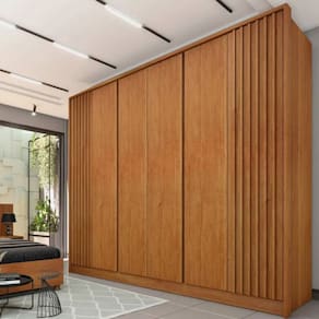 Esse produto é exatamente o que falta em seu dormitório. Um lindo produto com acabamento em MDP e em MDF, seu interior possui cabideiros em alumínio, além de puxador interno nas gavetas em PVC e gavetas com corrediças telescópicas. Para deixar o guarda roupa ainda mais charmoso, ele possui ripas nas portas laterais em MDF e o puxador em MDF nas por centrais e suas costas são inteiriças.
