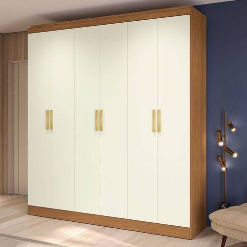 O(a) Guarda-Roupa Casal Baume 6 Portas 2 Gavetas Canela/Off White - Kappesberg é produzido em MDP na escala de brilho Fosco, e possui um grau de dificuldade de montagem: Médio.