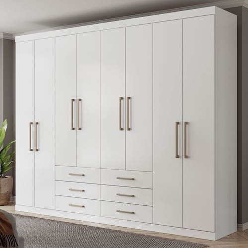 O(a) Guarda-Roupa Casal Belize 8 Portas 6 Gavetas Branco - Pnr Móveis é produzido em MDF e MDP na escala de brilho Semi-Brilho, e possui um grau de dificuldade de montagem: Médio.