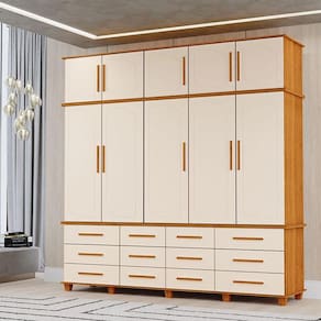 Sabe aquele Guarda Roupa com um toque retro? Apresentamos o Guarda Roupa Berlim fabricado pela Luapa Móveis, perfeito para quem precisa de amplo espaço de armazenamento e organização, oferecendo praticidade e elegância. O Guarda Roupa possui 10 portas, 12 gavetas com corrediças telescópicas, cabideiro em alumínio, prateleiras internas bem distribuídas, maleiro adicional na parte superior para guardar itens maiores, como malas, edredons e roupas de cama, maximizando o aproveitamento do espaço mantendo seu quarto sempre arrumado e pés em madeira. Ideal para quem busca durabilidade, estilo e funcionalidade em um só produto, aproveite!