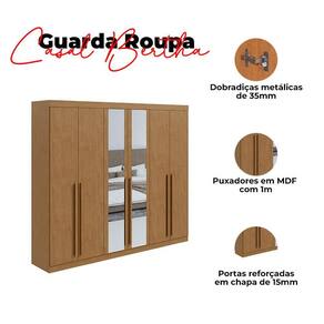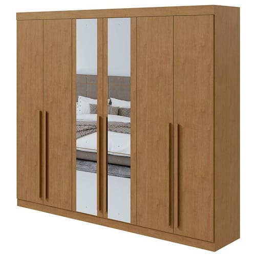 Guarda Roupa Casal Bertha 6 Portas Amêndoa Clean com Espelho - Lopas