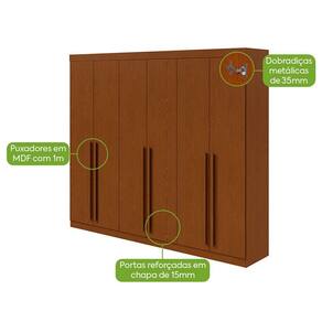 Começou a montar seu quarto? Então apresentamos para você este belo guarda roupa da linha Bertha. Conta com seis portas e puxadores em MDF, dando um design elegante e moderno. Seu ótimo espaço interno inclui quatro gavetas equipados com corrediças telescópicas. Além disso, com espaço exclusivo para calçados, permitindo uma melhor organização. Fabricado pela Lopas, é desenvolvido em 100% MDP com acabamentos refinados e uma estrutura robusta. Unindo praticidade e estilo é a escolha perfeita para transformar o quarto do casal, aproveite!