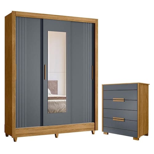 Guarda Roupa Casal Bolívia e Cômoda Dhara Freijó Cinza – Moval