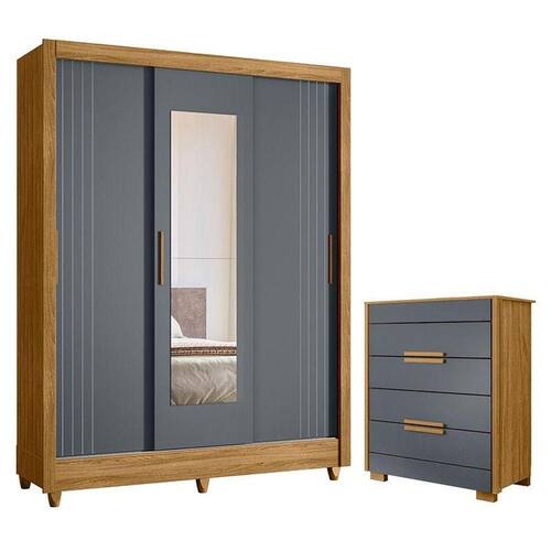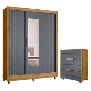 Guarda Roupa Casal Bolívia e Cômoda Dhara Freijó Cinza Moval