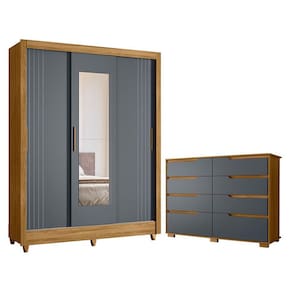 Guarda Roupa Casal Bolívia e Cômoda Georgia Freijó Cinza – Moval