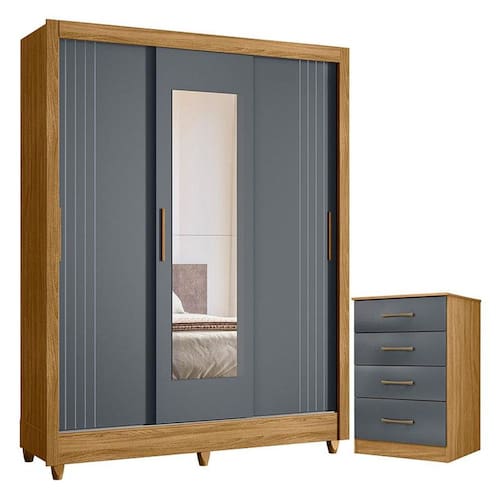 Guarda Roupa Casal Bolívia e Cômoda MS913 Freijó Cinza – Moval