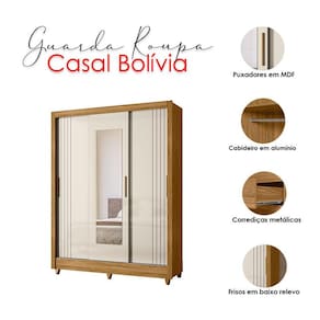 Organize seu quarto com elegância e o melhor custo benefício do mercado. Apresentamos o Guarda Roupa Casal Bolívia e Cômoda MS913 fabricados pela Moval. Guarda Roupa possui três portas deslizantes, sendo a porta central com espelho, as duas portas laterais apresentam frisos em baixo relevo, com trilhos em alumínio garantindo um deslizamento suave, duas gavetas equipadas com corrediças metálicas, puxadores em MDF, cabideiro e calceiros em alumínio para melhor organização interna e pés em PVC. A cômoda possui 04 gavetas sendo a última maior, corrediças metálicas e puxadores em MDF. Fabricado com materiais de alta qualidade que garante resistência e durabilidade ao produto. Confira mais detalhes e aproveite!