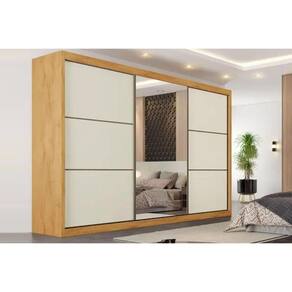 Guarda Roupa Casal Bragança 3 Portas De Coorer (1 C/ Espelho) E 6 Gavetas Off White/peroba - Europa