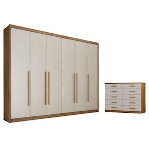 Para que seu quarto fique mais bonito e aconchegante apresentamos esse conjunto composto pelo guarda roupa da linha Bragança e o gavteiro da linha Milão com um design moderno. O guarda roupa possui várias repartições, gavetas, prateleiras amplo espaço interno garantindo para que suas roupas e acessórios fiquem organizados. O gaveteiro possui 10 gavetas oferecendo espaço extra para guardar os itens de sua preferência. Não perca mais tempo garanta já o seu!