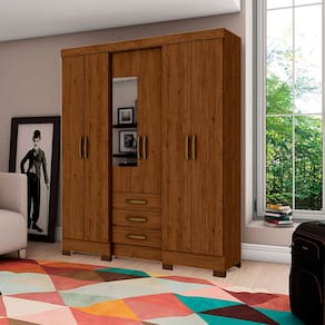 Guarda-Roupa Casal Briz 6 Portas e 3 Gavetas - Henn - Marrom Escuro